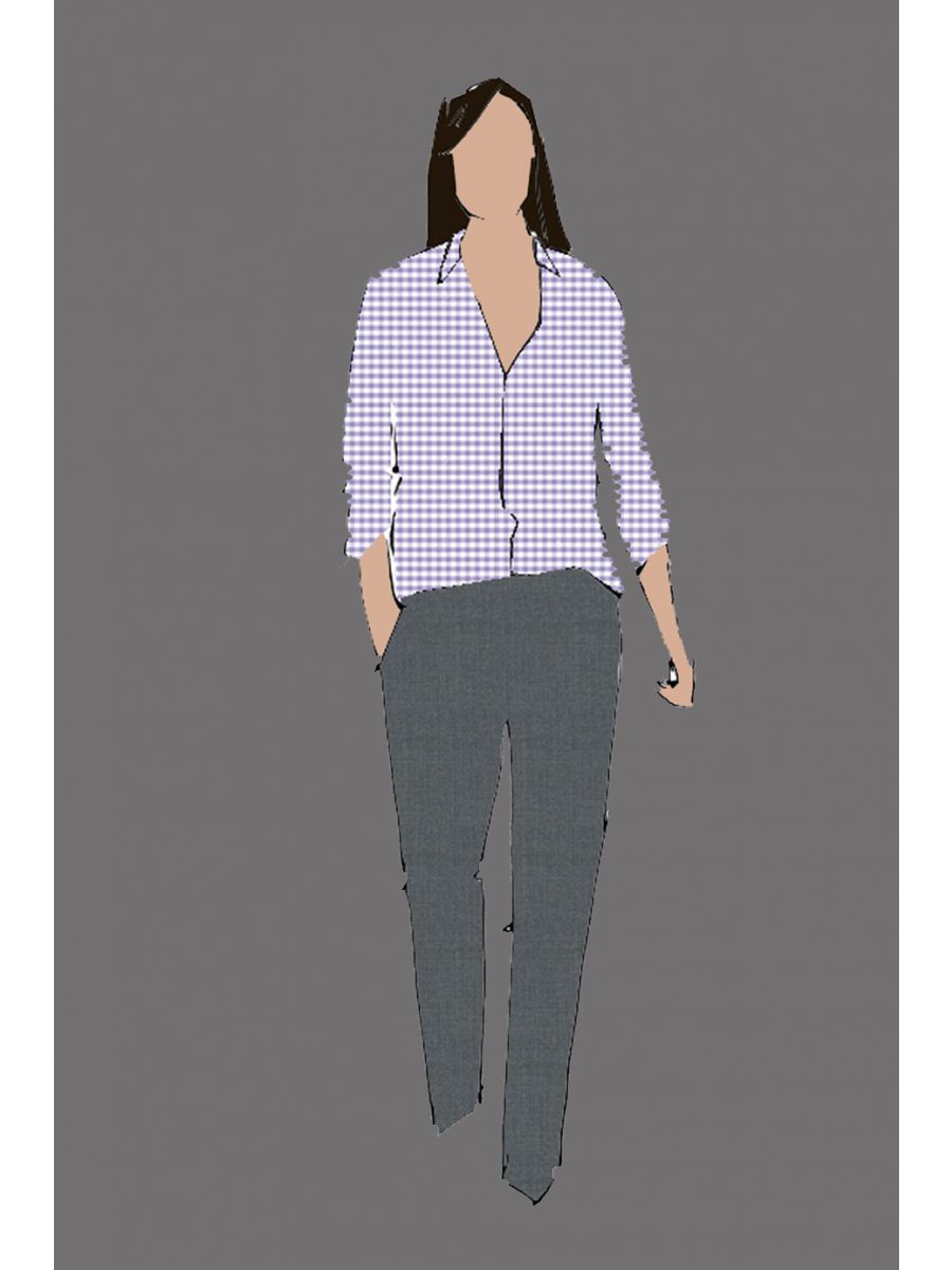 182136 - Uniform Shirt Ladies Check Lavender & White (Telecom)