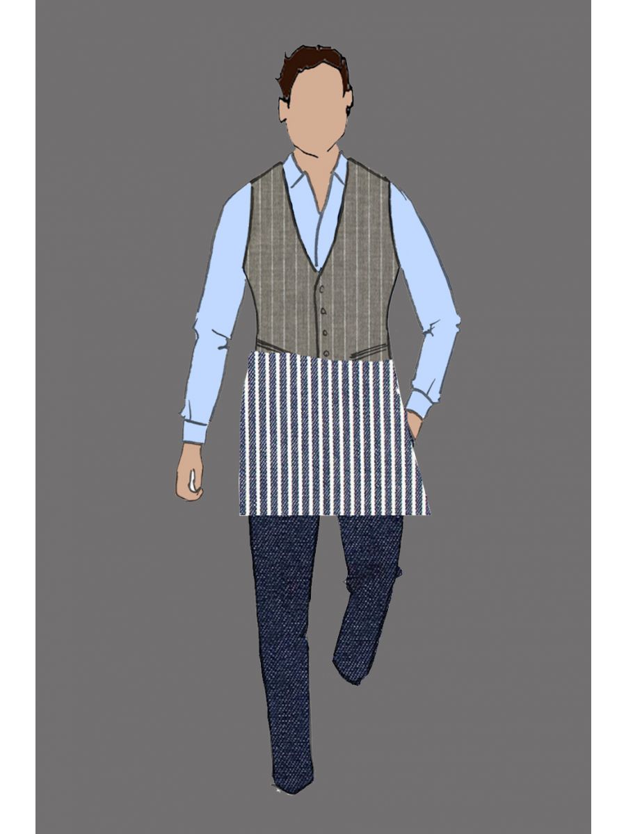 190328 - Navy/White Cottom Railroad Stripe Half Bistro Apron