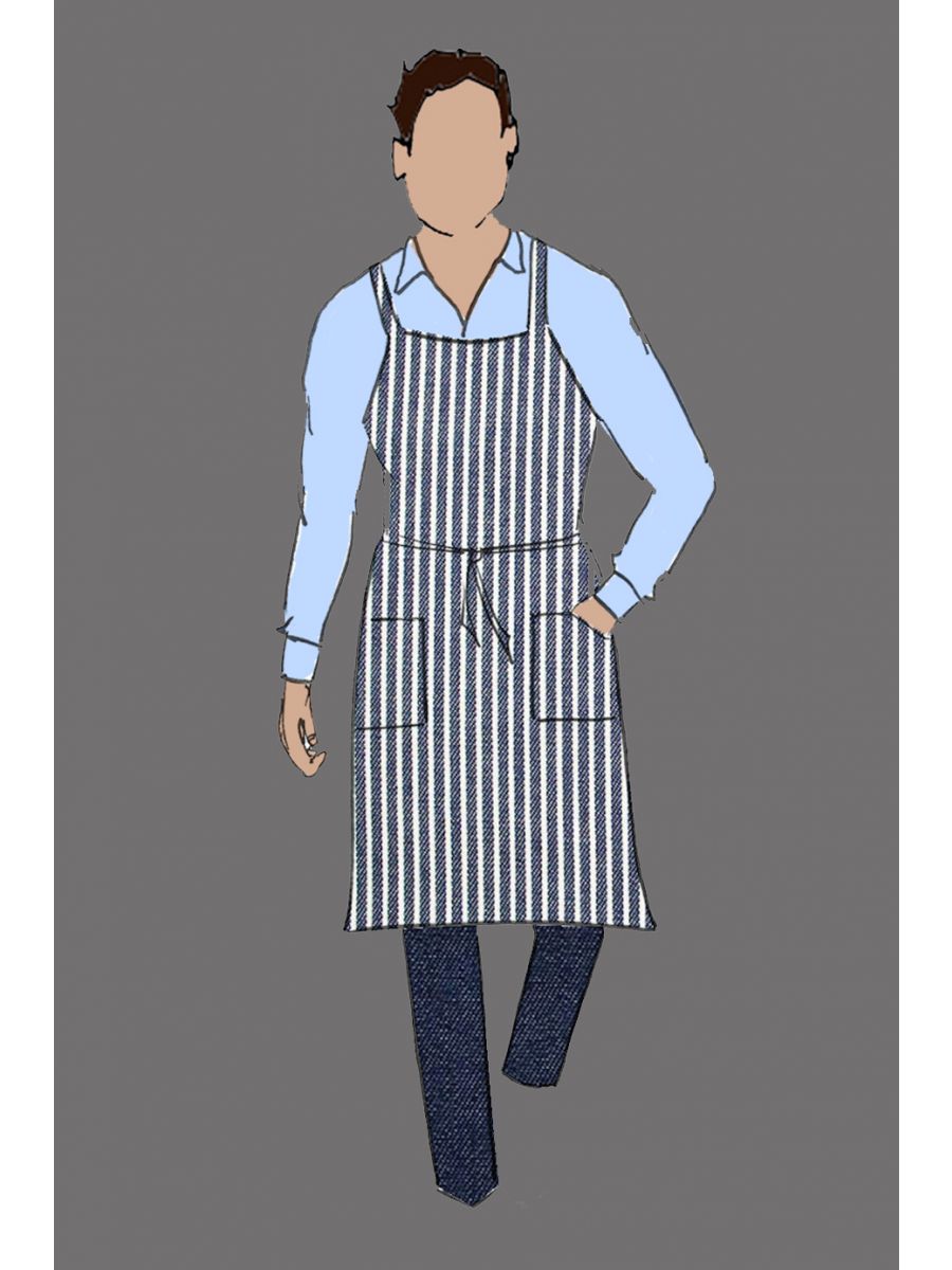 200103 - Navy/White Cottom Railroad Stripe Full Bistro Apron+H655